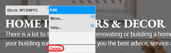Select Delete to immediately delete the block and ALL its content from the page.