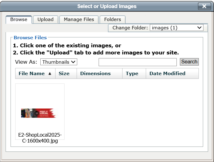 uploaded to your site. To use one of these existing images, click