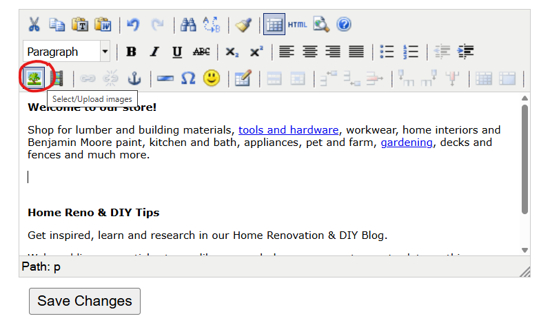 Important! Once you are done inserting all the images, save the changes to your WYSISYG block by clicking the [Save Changes] button (otherwise, your additions and/or changes will be lost).