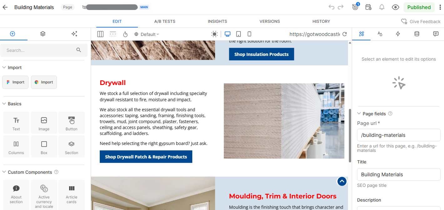 Orgill’s Impact eCommerce system has two Admin areas (Elastic Path and Builder.io). All content edits, such as deleting text, happen in