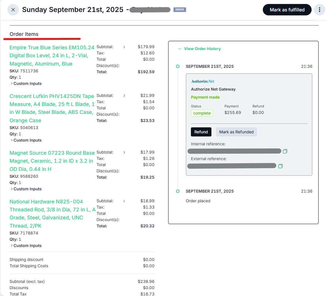 Once you have all of the ordered products on hand, then check to see if the customer selected in-store pickup or shipping.