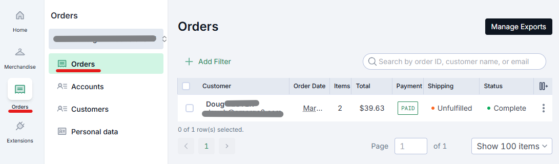 - Find the order and open up its details